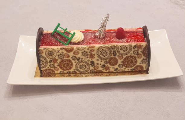 - Laissez refroidir le glaçage et répartissez-le uniformément sur la bûche de Noël au mascarpone et aux framboises.