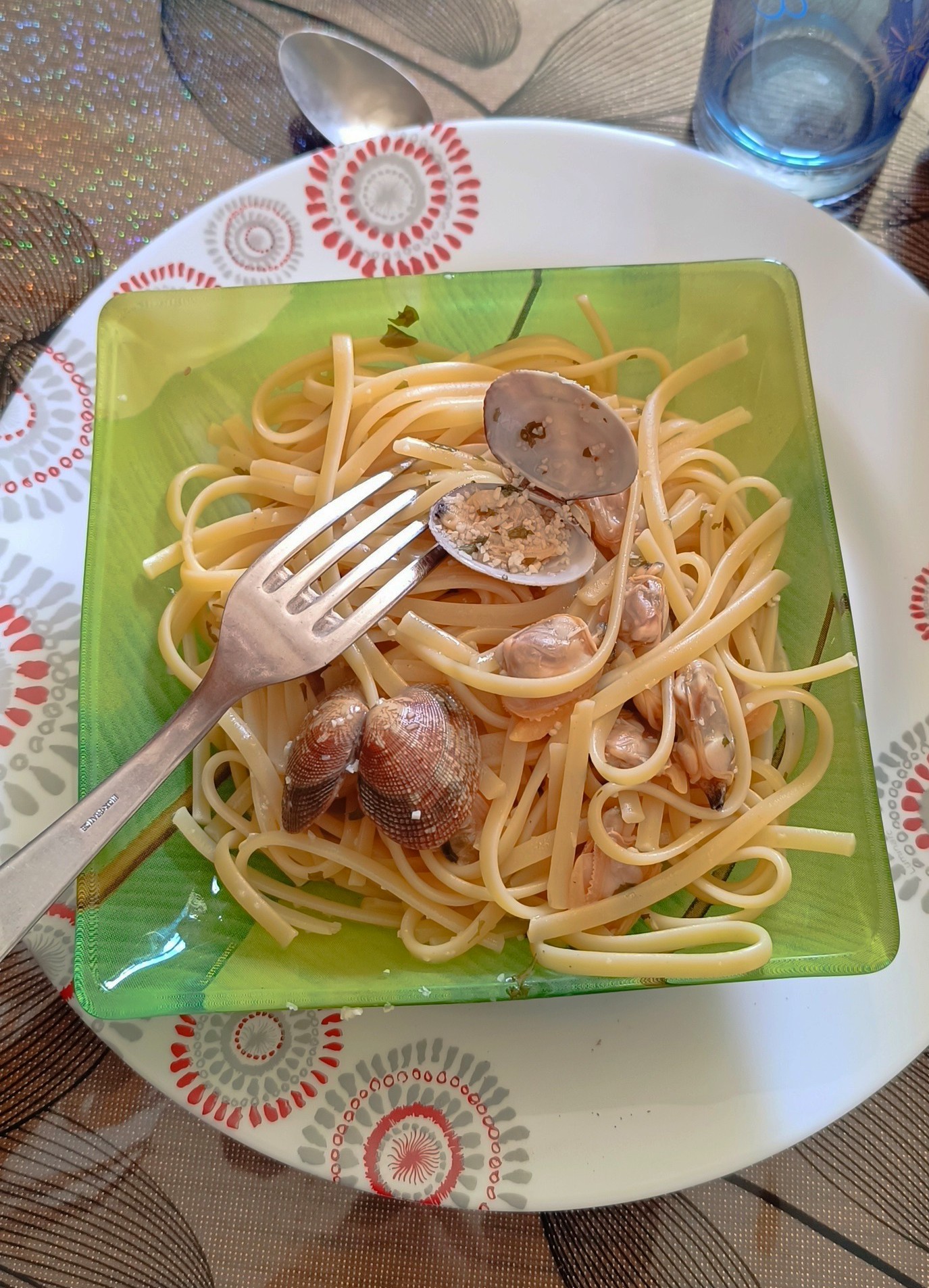 • Ajoutez les linguines égouttées directement dans la poêle avec les palourdes.